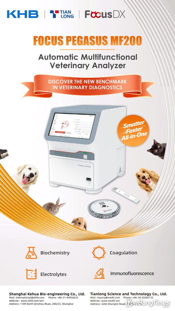 시안, 중국 2025년 11월 14일 -- KHB 그룹의 자회사이자 수의 현장 진단(POCT) 솔루션 혁신 기업인 광저우 포커스 바이오테크놀로지(Guangzhou Focus Biotechnology Co., Ltd.)가 자동 다기능 수의학 분석기 'FOCUS PEGASUS MF200' 업그레이드 버전을 선보였다. MF200은 수의 진단 분야에서 효율성, 신뢰성, 접근성을 새롭게 정의하는 차세대 시스템이다.