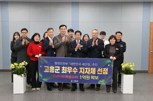 고흥군(군수 공영민)은 행정안전부가 주관한 '대한민국 새 단장' 추진 우수 자치단체 평가에서 최우수 지자체로 선정돼 특별교부세 1억 원을 확보했다고 밝혔다.