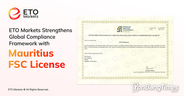 시드니 2026년 1월 13일 -- 글로벌 트레이딩 플랫폼 ETO 마켓츠(ETO Markets)가 모리셔스 금융서비스위원회(Mauritius FSC)로부터 금융 서비스 라이선스(라이선스 번호 C119023893)를 취득했다. 이번 라이선스 취득은 국제 시장에서 투명성, 투자자 보호 및 높은 운영 기준에 대한 ETO 마켓츠의 약속에 힘을 실어준다.