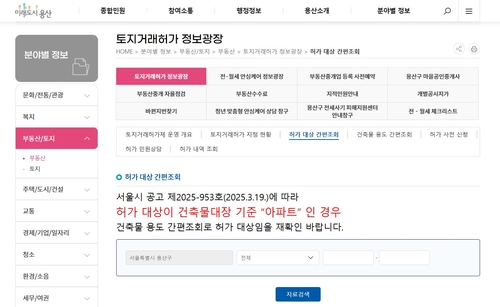토지거래허가 정보광장을 이용하려면 용산구청 누리집(www.yongsan.go.kr)-'분야별 정보-부동산/토지-부동산'으로 접속하면 된다.