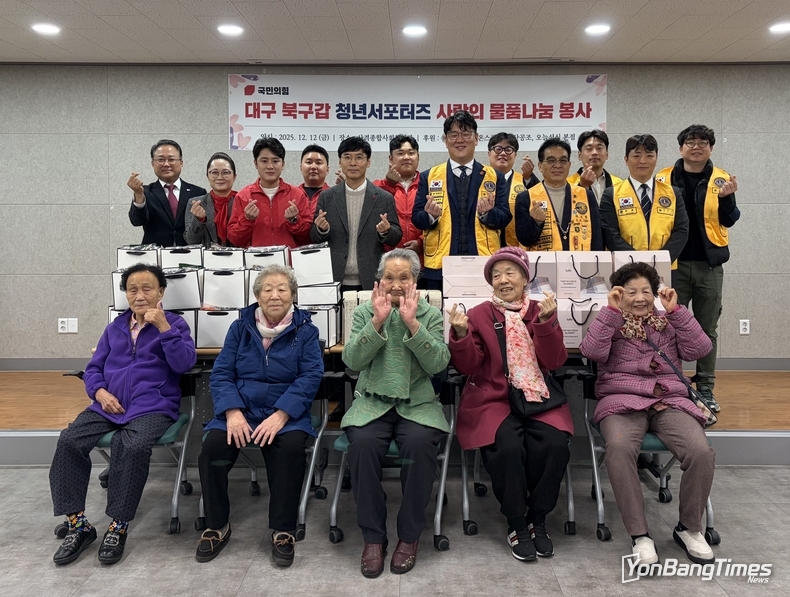 대구 북구갑 청년서포터즈가 12일 산격종합사회복지관에서 지역 어르신들을 위한 ‘사랑의 물품나눔’ 행사를 열어 연말 지역사회에 훈훈한 온기를 전했다.