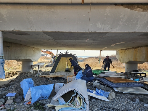 울산 북구는 지난 16일 어물동 1240-148번지 일원 금천교 하부 불법시설물에 대한 행정대집행을 실시했다고 17일 밝혔다. 이날 북구청 건설과 직원 12명과 굴삭기가 투입돼 텐트와 의자, 테이블 등 불법시설물을 모두 수거했다.