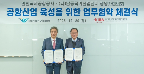 인천국제공항공사(사장 이학재)는 국내 중소기업과 상생협력을 확대하기 위해 (사)남동국가산업단지 경영자협의회(회장 이율기, 이하 '남동경협')와 '공항산업 분야 중소기업 상생협력을 위한 업무협약'을 체결했다고 30일 밝혔다.