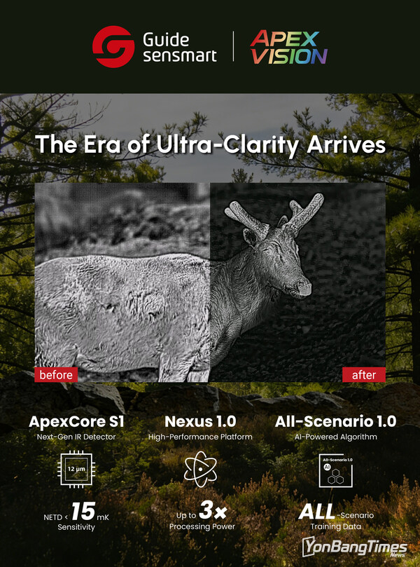 라스베이거스 2026년 1월11일 -- 열화상 기술 분야의 글로벌 선도기업 가이드 센스마트(Guide Sensmart)(센트럴 홀, 21740번 부스)가 차세대 열화상 혁신 기술 ApexVision의 공식 출시와 함께 해당 기술이 적용된 신제품 라인업을 함께 공개했다. 가이드 센스마트는 이번 출시를 계기로 단순한 '열 탐지' 단계에서 '선명하고, 정밀하고, 지능적인 탐지' 단계로 이어지는 산업 전반의 도약과 더불어, 울트라 클라리티(Ultra-Clarity)로 정의되는 새로운 시대의 개막을 알렸다