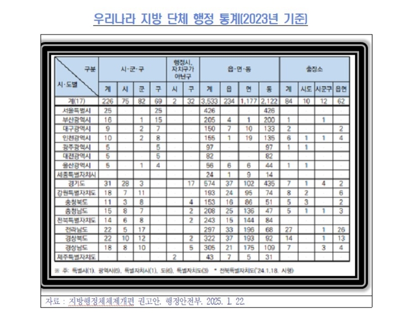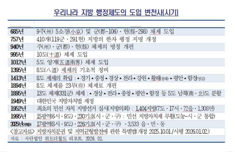 앞서 표에서 간략하게 살펴보았듯이 기초자치단체의 행정명 가운데도 수천 년, 수백 년의 오랜 역사를 지닌 지역(지방)이 많으므로 향후 지방 개편에 있어서 신중한 배려가 있어야 할 것으로 본다.