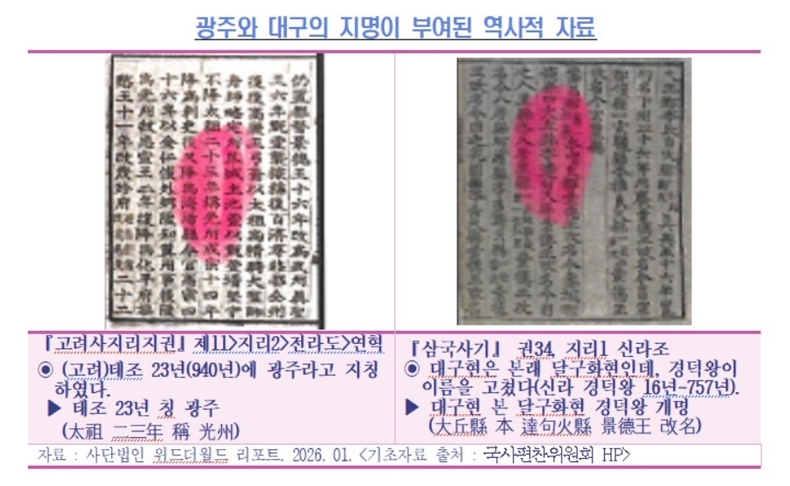 광역권 도시명 중 1000여 년의 지명 역사 사례: '광주'와 '대구'