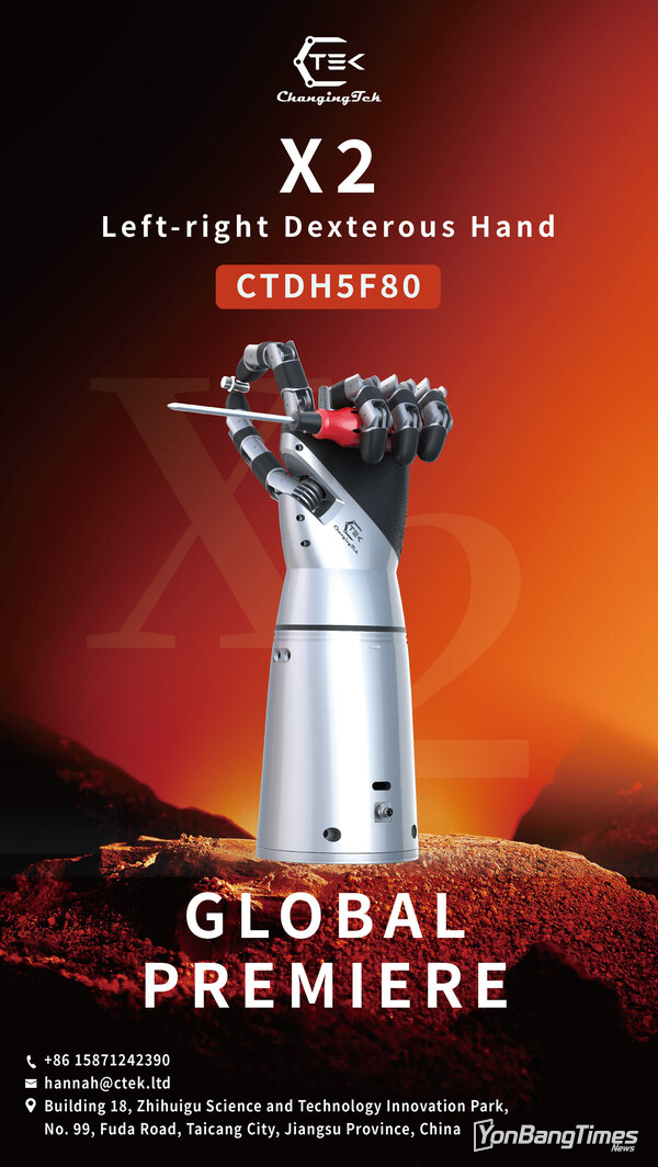 쑤저우, 중국 2026년 2월 27일 -- 로봇 엔드이펙터 솔루션 분야의 글로벌 선도기업 체인징텍 로보틱스 테크놀로지(쑤저우)(Changingtek Robotics Technology (Suzhou) Co., Ltd.)가 세계 최초의 적응형 'X2', 즉 좌우 양손 전환형 덱스트러스 핸드를 공식 출시했다. 혁신적인 텐던 구동식 전달 시스템을 기반으로 한 X2는 왼손과 오른손 구성 간 자율 재구성을 구현한다. 이번 혁신은 경량 설계, 운용 유연성, 기능적 자유도 측면에서 중대한 진전을 이루며 로봇 덱스트러스 핸드의 성능 기준을 새롭게 정의한다.