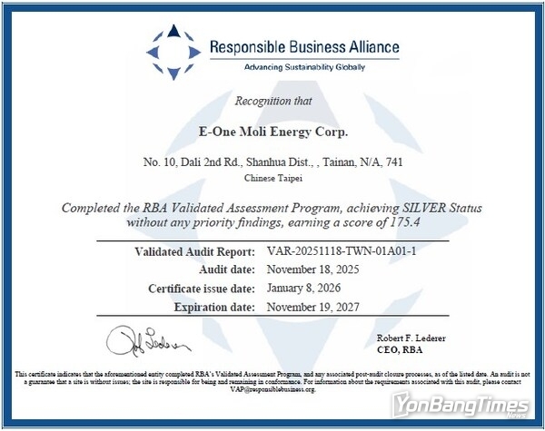 몰리셀(Molicel)이 책임감 있는 비즈니스 연합(Responsible Business Alliance, RBA)으로부터 자사의 공장이 공식적으로 실버 등급을 획득했다고 발표했다. 이 권위 있는 인증은 글로벌 지속 가능성 및 윤리적 공급망 리더십을 향한 몰리셀의 여정에서 중요한 이정표다.