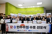 광주시교육청(교육감 이정선)은 3일 본청 북카페에서 교직원, 학생의회 소속 학생들이 참여한 가운데 '12·3 민주주의 수호 선포식'을 개최했다. 이날 선포식은 지난해 헌법 가치를 훼손한 12·3 비상계엄 사건을 잊지 않고, 민주주의를 수호하고자 한 시민들의 노력을 기억하기 위해 마련됐다. 특히 시 교육청은 헌법과 민주주의를 지키기 위한 교육의 역할을 되새기고자 '광주교육 민주주의 수호 선언문'을 선포했다. 이정선 교육감은 선언문을 통해 "광주는 늘 민주주의 수호 선봉에 서왔으며, 광주교육은 광주정신을 실천하는 민주시민을 육성하며 K-민주주의의 초석을 마련했다"며 "모든 교실을 민주주의의 배움터이자 실천의 공간으로 만들겠다"고 밝혔다. 또 ▲헌법을 배우고 실천하는 민주시민교육 강화 ▲5·18 전국화·세계화 ▲학생자치 중심의 학교 민주거버넌스 구축 ▲교원의 민주시민교육 전문성 강화 ▲존중과 다양성에 기반한 교육공동체 구축 등 민주주의 교육 강화를 위한 5대 실천과제를 추진하기로 했다. 이날 행사에는 광주광역시학생의회 학생들이 함께해 미래세대와 함께하는 민주주의 수호의 상징적 의미를 더했다. 이정선 교육감과 학생, 교직원들은 선언문 선포에 이어 민주주의 수호 다짐