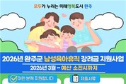 완주군에 사는 아빠가 육아휴직을 하면 월 30만 원씩, 3개월 동안 최대 90만 원의 장려금을 받는다. 13일 완주군은 남성 근로자의 육아휴직 사용을 독려하고 자녀 양육에 따른 경제적 부담을 덜어주고자 '2026년 남성 육아휴직 장려금 지원사업'을 본격적으로 추진한다고 밝혔다. 이번 사업은 도내 100인 미만 사업장에 재직 중인 남성 육아휴직자를 대상으로 하며, 올해는 총 20명 내외를 지원하고 예산이 소진되면 조기에 마감한다. 지원을 받으려면 신청일 기준 6개월 이상 완주군에 주민등록을 두고 있어야 하며, 육아휴직 대상 자녀 또한 완주군에 함께 거주해야 한다. 또한 '고용보험법'에 따른 육아휴직 급여 지급 대상자여야 하며, 특례 적용자는 특례 기간을 제외한 기간에 대해 지원을 신청할 수 있다. 신청을 희망하는 대상자는 신청서, 개인정보 수집·이용 동의서, 육아휴직확인서, 육아휴직급여 지급결정통지서, 통장 사본, 주민등록등본, 국민연금 사업장 가입증명서 등 관련 서류를 구비해 완주군에 제출하면 된다. 세부 신청 방법과 절차는 완주군 홈페이지를 통해 확인할 수 있다. 유희태 완주군수는 "남성의 육아 참여 확대는 가정의 행복뿐 아니라 지역사회의 지속 가능한 발전
