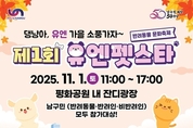 부산광역시 남구(구청장 오은택)는 오는 11월 1일(토), 구 개청 50주년을 기념해 평화공원 내 잔디광장에서 '제1회 유엔펫스타(Pet Star, 반려동물 문화축제'를 개최한다고 밝혔다. 이번 축제는 반려동물과 반려인, 그리고 비반려인 모두가 함께 어울리며 반려 문화에 대한 인식을 개선하고, 올바른 반려동물 문화 정착을 도모하기 위해 마련됐다. 행사는 11시부터 오후 5시까지 진행되며, 남구민 누구나 참여할 수 있는 다채로운 프로그램이 운영된다. 개막식을 시작으로 반려동물과 함께하는 ▲반려동물과 함께하는 플로깅 '유엔펫로깅'(사전등록 필요) ▲반려동물 문화교실 '펫티켓토크'▲반려동물 퀴즈대결 '댕퀴즈 온더유엔' ▲어질리티 경주 및 기다려 대회로 구성된 '댕냥이 가을운동회' 등이 펼쳐질 예정이다. 또한 행사장 내에는 포토존, 유엔펫 상담소(댕냥병원 & 동물등록), 펫타로 체험, 양말목 키링·허브볼 만들기 체험부스 등 가족 단위 참가자들이 즐길 수 있는 다양한 체험 공간도 마련된다. 참여자는 반려동물의 목줄을 반드시 착용하고 배변 봉투를 지참해야 하며, 주차 공간이 협소하므로 대중교통 이용이 권장된다. 오은택 남구청장은 "이번 제1회 유엔펫스타는 남구 개청 5