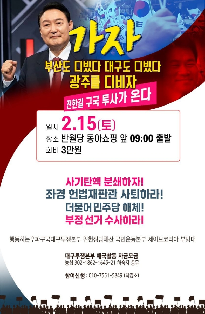 전한길 강사는 2월 15일 광주 금남로에서 열릴 집회에 참석할 예정이다. 광주는 상대적으로 진보적인 색채가 강한 지역이지만, 탄핵 반대 집회가 예정되면서 지역 내 관심이 집중되고 있다.
