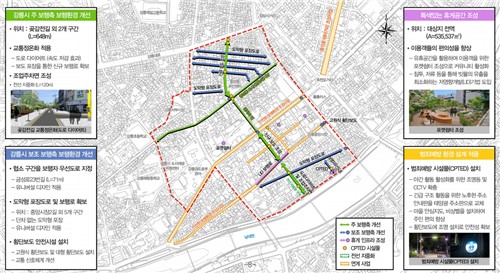 주요 사업은 ▲주 보행축 도로다이어트 및 보도 확보 ▲보행자 우선도로 도입 ▲고원식·대형 횡단보도 설치 ▲포켓쉼터·녹지 기반 휴게공간 조성 ▲범죄예방 시설물(CPTED) 기반 야간 안전환경 강화 등이다.