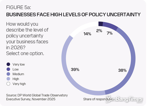 DP 월드 글로벌 무역 관측소(GTO)는 데이터와 통찰력을 기반으로 하는 플랫폼으로, 8개 산업 분야와 19개국 3500명의 공급망 및 물류 경영진을 대상으로 한 독자적인 설문조사를 포함한 연구를 바탕으로 의사결정자들에게 글로벌 무역을 재편하는 힘에 대한 실행 가능한 정보를 제공하도록 설계됐다. 해당 연구는 제네바에 본사를 둔 인사이트 기관인 호라이즌 그룹과 함께 2025년 11월에 진행됐다.