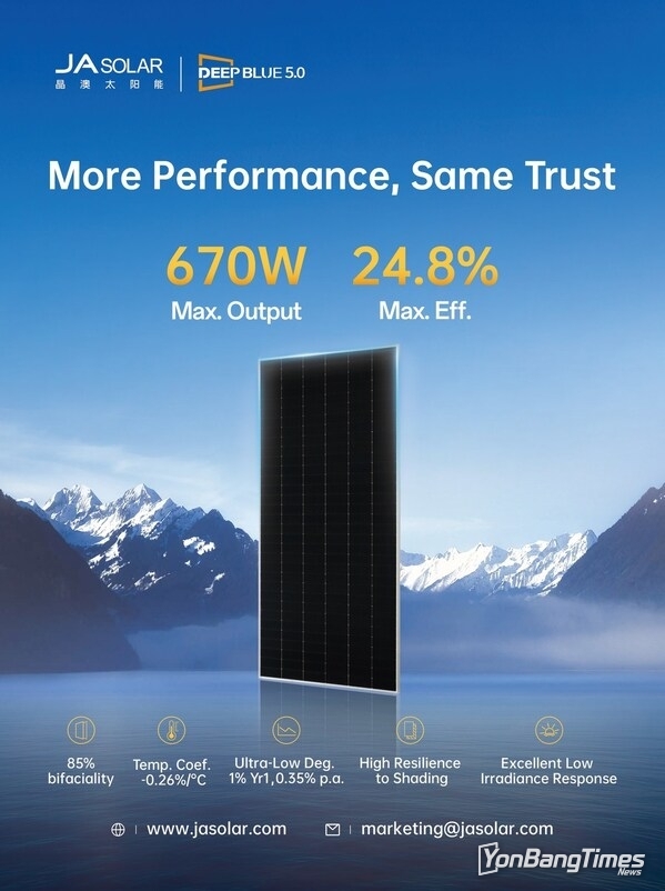 DeepBlue 5.0은 독립적인 제삼자 검증과 엄격한 품질 관리를 기반으로, 동일한 신뢰 수준에서 더 높은 성능을 제공하며 신뢰성과 고품질 제품에 대한 JA 솔라의 오랜 약속을 구현한다. 이러한 토대를 바탕으로 JA 솔라는 점점 더 역동적이고 비용 민감도가 높아지는 글로벌 태양광 시장에서 개발사에 신뢰, 안정성, 투자 적합성이 입증된 수익을 제공하는 글로벌 파트너로서의 역할을 이어가고 있다.