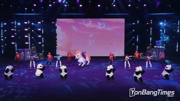 로봇 단독 공연을 넘어 인간과 로봇의 협업, 다중 로봇 간 상호작용도 함께 선보였다. 일부 무대에서는 인간 무용수들이 애지봇 G2 휴머노이드 로봇, 애지봇 D1 사족보행 로봇과 함께 군무를 펼치며, 인간의 움직임과 로봇 동작 간 실시간 정합성을 시연했다. 이 외에도 로봇과 인간 마술사가 함께하는 카드 마술, 로봇만으로 구현한 클래식 플로팅 일루전, 여러 대의 휴머노이드 로봇이 상호작용하는 코미디 스킷 등이 이어지며, 점차 자연스러워지는 타이밍, 역할 분담, 표현력을 보여줬다.