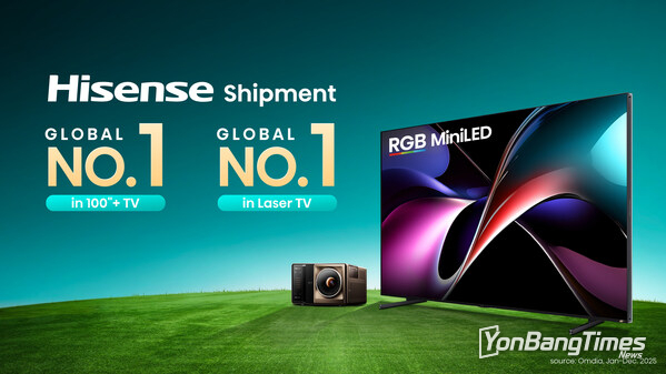 칭다오, 중국 2026년 3월 3일 -- 글로벌 소비자 가전 및 가전 분야의 선도 브랜드 하이센스(Hisense)가 글로벌 대형 스크린 TV 시장에서의 리더십을 재확인했다. 옴디아(Omdia)의 2025년 연간 글로벌 출하량 데이터에 따르면, 하이센스는 100인치 이상 TV 부문에서 2023년부터 2025년까지 3년 연속 세계 1위를 기록했으며, 2025년 글로벌 출하량 점유율은 57.1%에 달했다.