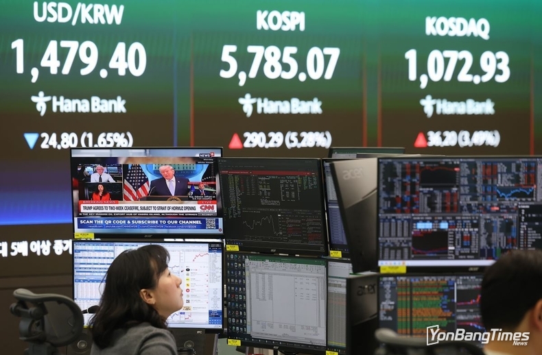 미국과 이란이 2주간의 휴전에 합의하자 원·달러 환율이 30원 이상 급락하고 국내 증시는 크게 반등했다.