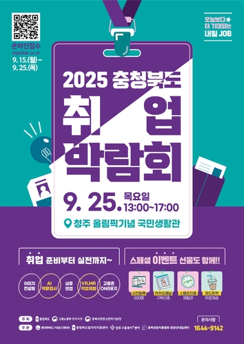 충북도는 이달 25일 청주 올림픽국민생활관에서 지역 일자리 창출 및 구인·구직자 간 미스매칭 해소를 위해 '2025 충청북도 취업박람회'를 개최했다고 밝혔다.