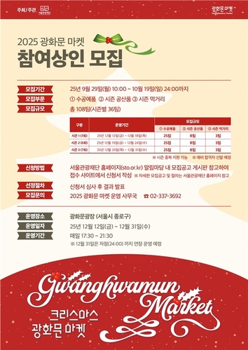 서울관광재단(대표이사 길기연)은 오는 12월 광화문광장에서 개최되는 서울 대표 크리스마스 행사인 '2025 광화문 마켓'에 참여할 소상공인(개인 및 단체)를 9월 29일(월)부터 3주간 공개 모집한다고 밝혔다.