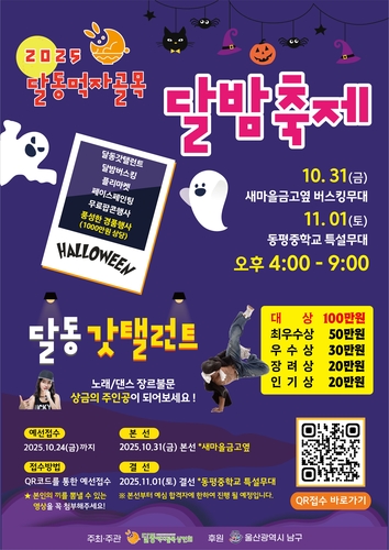 울산 남구(구청장 서동욱)는 '골목상권 활성화 프로젝트' 일환으로 추진하는 '2025 달동먹자골목 달밤축제'를 달동먹자골목상인회(회장 장근대) 주관으로 10월 31일부터 11월 1일까지 이틀간 달동먹자골목 일원에서 개최한다고 밝혔다.