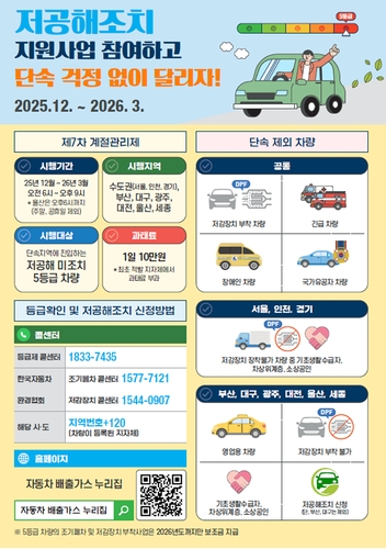 운행제한 대상은 전국에 등록된 모든 5등급 차량이며, 제한 시간은 평일 오전 6시부터 오후 9시까지다. 다만, 영업용 차량과 수급자 및 차상위계층 소유 차량, 소상공인 차량은 이번 단속에서 제외된다. 또 한시적으로 제외됐던 저공해조치 신청 차량은 이번 12월 1일부터 단속 대상에 포함된다.
