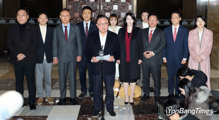 29일 친한계 의원 16명은 국회 본청 예결위 회의장 앞에서 기자회견을 열고 "한 전 대표에 대한 제명 결정은 심각한 해당 행위로, 우리 의원들은 절대 받아들일 수 없다"며 "개인적 이익을 위해 당을 반헌법적·비민주적으로 몰아간 장동혁 지도부는 이번 사태에 책임을 지고 즉각 물러나야 한다"고 밝혔다.
