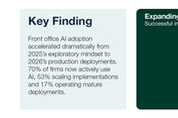 주요 결과 구매 담당 임원 200명을 대상으로 한 연례 설문조사에서 작년 같은 시점 대비 AI 도입이 크게 증가한 것으로 나타났다. 3년 만에 처음으로 혁신이 기술 및 운영 투자의 1등 동인이 됐다. 기업들은 투자 관리 용도로 타사 AI 솔루션을 선정할 때 공급업체의 안정성을 최우선으로 고려하고 있었다. 사모 시장과 대체 투자가 기술 혁신을 맞이할 준비가 되어 있다고 생각하는 응답자가 지난 12개월 사이 급격히 증가했다. 금융 기술 분야의 글로벌 선도기업 심코프(SimCorp)의 의뢰로 진행된 새 글로벌 조사에 따르면, 구매측 기업의 70%가 프런트 오피스 지원에 인공 지능을 성공적으로 차용하고 있는 것으로 나타났다. 작년 보고서에서 AI 도구를 적극적으로 탐구하고 있다고 밝힌 응답자가 약 10%에 그친 것에 비하면 크게 증가한 수치다. 당시 75%는 AI의 잠재력을 인식하고는 있었지만 그것을 통합하는 방법에 대해서는 길잡이가 필요한 상태였다. 이번 조사 결과는 2026 인베스트옵스(InvestOps) 보고서에 발표된 것으로, 전 세계 자산 운용사, 연기금, 보험사 임원 200명의 답변을 토대로 작성됐다. 조사는 WBR 인사이트(Insights)가 맡았으며