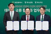 하나은행(은행장 이호성)과 하나카드(대표이사 성영수)는 지난 16일 대전광역시(시장 이장우)와 함께 '데이터 교류 활성화를 위한 업무협약'을 체결하고 지역사회 발전 및 소상공인의 자생력 강화를 위해 상호 협력키로 했다고 밝혔다. 이번 업무협약은 민(民)·관(官)이 데이터 협력을 통해 소상공인을 위한 금융정책 및 상품을 개발해 지역 상권을 활성화하고, ESG 행정 등 지역 현안에 기민하게 대응하기 위해 마련됐다. 이를 위해 하나은행과 하나카드는 ▲지역 상권 현황 ▲소상공인 금융거래 동향 ▲소비 트렌드 ▲외국인 손님 분석 등 다양한 금융거래 데이터를 대전광역시와 교류할 계획이며, 대전광역시는 제공받은 데이터를 통해 ▲지역경제 활성화 ▲관광정책 ▲지역화폐 분석 등 보다 정밀한 소상공인 지원 정책을 수립하는데 활용할 예정이다. 대전광역시청에서 진행된 이날 협약식에서 성영수 하나카드 대표와 이동열 하나은행 충청영업그룹 부행장은 침체된 지역경제의 위기 극복 및 균형 성장의 필요성을 함께 공감하고, 정책마련을 위한 데이터 활용 이외에도 지역화폐, 정책금융, 축제·행사 등 정책효과 분석에도 협업키로 했다. 특히, 하나은행과 하나카드가 보유한 ▲소상공인 업종·규모별 분석 ▲